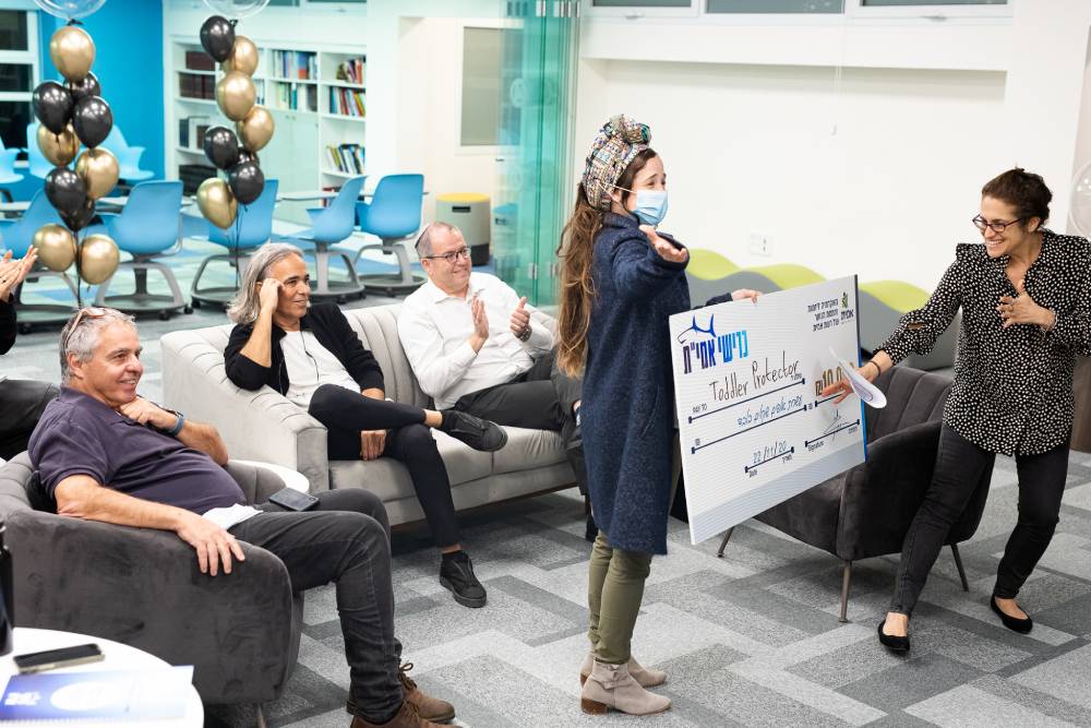 במקום הראשון זכו תלמידות אמי”ת מודיעין בפיתוח Toddler Protector לנתינת מענה להתעללות בגני ילדים ושכחת ילדים ברכב.